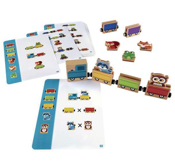 Descriptif du produit :L\'enfant doit construire un train et organiser les wagons qui le composent avec les animaux transportés à partir d\'indices. Une fois le train réalisé, il retourne la fiche et compare pour s\'autocorriger. Les 12 défis, illustrés sur les fiches, sont numérotés par ordre de difficulté croissante.Conforme à la norme EN71 1.2.3Ne convient pas aux enfants de moins de 3 ans