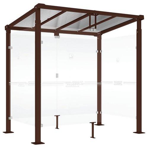 Descriptif du produit :Abri fumeurs Milan bardages fond et latéraux en verre Procity Armature matériau : Acier Coloris : Marron foncé Finition : Galvanisée Garantie client : 5 ans Longueur hors tout : 2.50 m Montage : À monter Paroi matériau : Verre Poids du produit : 445 kg Profondeur hors tout : 1.82 m Toiture matériau : Polycarbonate Abri fumeurs Milan avec poteaux carrés en tube acier 80 x ...