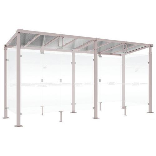 Descriptif du produit :Abri fumeurs Milan bardages fond et latéraux en verre Procity Armature matériau : Acier Coloris : Gris clair Finition : Galvanisée Garantie client : 5 ans Longueur hors tout : 5 m Montage : À monter Paroi matériau : Verre Poids du produit : 775 kg Profondeur hors tout : 1.82 m Toiture matériau : Polycarbonate Abri fumeurs Milan avec poteaux carrés en tube acier 80 x 80 mm ...