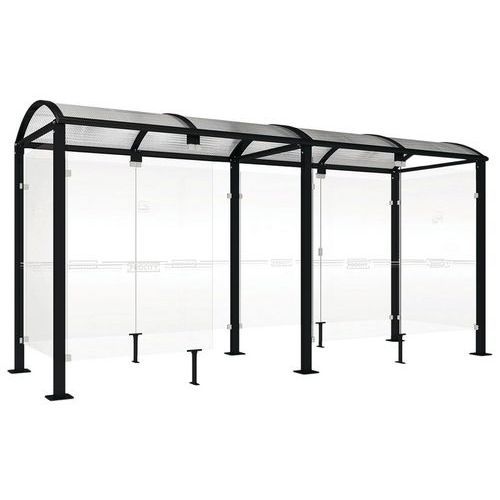 Abri fumeurs Voûte M bardages fond et latéraux Procity Armature matériau : Acier Coloris : Noir Finition : Galvanisée Garantie client : 5 ans Hauteur hors tout : 2.54 m Longueur hors tout : 5 m Montage : À monter Paroi matériau : Verre Poids du produit : 635 kg Profondeur hors tout : 1.66 m Toiture matériau : Polycarbonate Abri fumeurs Voûte M avec poteaux en acier 80 x 80 mm sur platines. Toiture de l'abri : cadre composé de deux traverses en tube aluminium 40 x 60 mm et de deux gouttières en profié aluminium. Arceaux en profilés aluminium cintrés. Voûte en polycarbonate alvéolaire translucide épaisseur 6 mm antiuv, bardages en verre sécurisé de 8 mm. Peint sur galva Abri fumeurs Voûte M bardages fond et latéraux, Hauteur hors tout: 2.54 m, Longueur hors tout: 5 m, Armature matériau: Acier, Profondeur hors tout: 1.66 m, Finition: Galvanisée, Coloris: Noir, Poids: 635 kg, Montage: À monter, Paroi matériau: Verre, Toiture matériau: Polycarbonate
