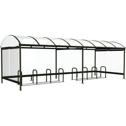 Abri cycles à toiture plane, Longueur hors tout: 5.57 m, Profondeur hors tout: 2.53 m, Modèle: Simple face, Nb de places: 12, Haut ...