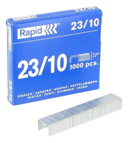 Descriptif du produit :- Les agrafes Rapid Standard 23/10 permettent d'agrafer jusqu'à 70 feuilles de papier (80 g/m²). Son fil mou galvanisé relie facilement vos documents. Les arrêtes sont acérées pour mieux pénétrer le papier.Hauteur de patte de 10 mm.Boîte de 1000 agrafes.