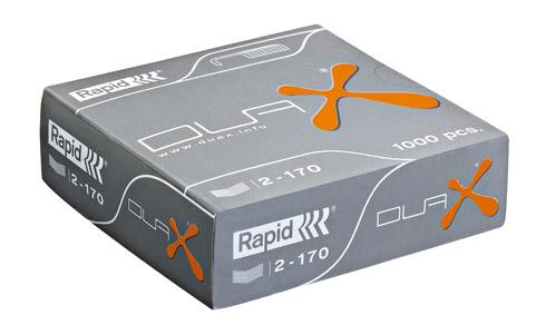 - Pour agrafer jusqu'à 170 feuilles. Fil galvanisé unique pour un meilleur résultat. Arêtes acérées pour meilleure pénétration. Boîte de 1000 agrafes Rapid Duax. Marque : Rapid