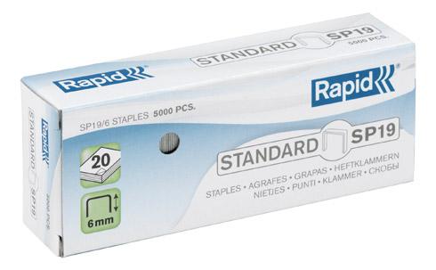 Descriptif du produit :- Gardez vos documents ensemble, bien fixés avec l’agrafe Rapid SP 19/6. Réalisée en acier normalisé SP19-06, elle est traitée contre l’usure et l’oxydation. Sa capacité d’agrafage est de 2 à 30 feuilles 80 g/m2. Cette agrafe est compatible avec toutes les marques d’agrafeuses. Conditionnement : boîte de 5000 agrafes.