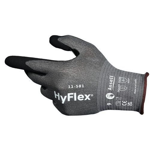 Gants légers anticoupure supérieure EN ISO F Hyflex 11581 Ansell Coloris : Gris Enduction matière : Nitrile Gant matière : Nylon Gant taille : 8 Jauge gant : 21 Matière textile : Élasthanne Nb de paires : 12 Norme EN 388 : 3X42F Surface d'enduction : Paume Confort élevé : Les gants industriels HyFlex® 11581 sont ultralégers et offrent une protection ANSI/ISEA 1052024 CUT A6 et EN ISO F avec 20 % de poids en moins*, ce qui garantit une résistance supérieure aux coupures et une meilleure dextérité. Défenses accrues : Résistance à la coupure 6 fois supérieure** grâce à un fil HPPE simple de nouvelle génération développé avec la technologie de résistance à la coupure INTERCEPT™ pour une protection fiable des mains. Excellente adhérence : Dotés de la technologie FORTIX™ et d'un renfort au niveau de l'entrejambe du pouce, ces gants de protection des mains garantissent une manipulation plus sûre dans des conditions abrasives. Plus de commodité : En outre, les gants de protection HyFlex® 11581 permettent aux utilisateurs de travailler avec plusieurs appareils à écran tactile tout en les gardant sur eux. Répondant aux besoins de protection et aux critères de qualité les plus exigeants, HYFLEX constitue une réference en matiere de sécurité dan Gants légers anticoupure supérieure EN ISO F Hyflex 11581, Enduction matière: Nitrile, Surface d'enduction: Paume, Gant matière: Nylon, Gant taille: 8, Coloris: Gris, Matière textile: Élasthanne, Nb de paires: 12