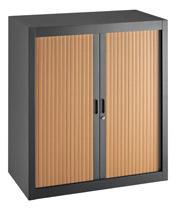 Fermeture : rideaux à lamelles PVC 25 mm. Finitions de rideaux : hêtre. Poignées encastrées noires. Serrure avec 2 clés fournies dont 1 articulée.