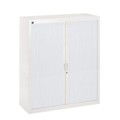 ARMOIRE BASSE MÉTAL H 136 X L 120 CM À RIDEAUX DÉMONTABLES BRUNEAU CORPS BLANC PORTES BLANC