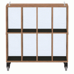 Armoire basse corps en LIGNOpal, panneau de particules fines mélaminé avec chants collés en matière synthétique (MS).Avec parois intermédiaires collées.Colonne perforée (25 mm) avec tablettes et panneau arrière en tôle d\'acier perforée.2 colonnes avec 5 bacs en plastique, hauteur 15 cm, sur rail de guidage.1 colonne avec 1 porte à battant, poignée étrier, tablettes amovibles.Système de verrouillage avec serrure à barillet.Aimants fixés sur les parois latérales pour la liaison avec d\'autres éléments.2 barres de préhension métalliques fixées sur l\'armoire.Livré monté.