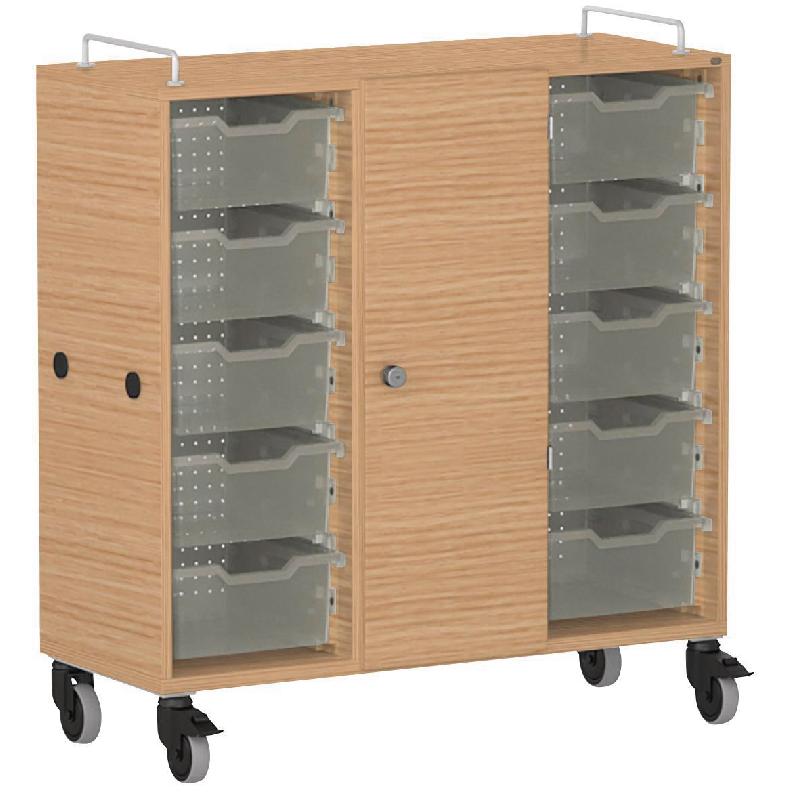 Descriptif du produit :Armoire basse corps en LIGNOpal, panneau de particules fines mélaminé avec chants collés en matière synthétique (MS).Avec parois intermédiaires collées.Colonne perforée (25 mm) avec tablettes et panneau arrière en tôle d\'acier perforée.2 colonnes avec 5 bacs en plastique, hauteur 15 cm, sur rail de guidage.1 colonne avec 1 porte à battant, poignée étrier, tablettes amovibles.Systèm ...