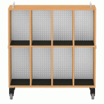 Descriptif du produit :Armoire basse corps en LIGNOpal, panneau de particules fines mélaminé avec chants collés en matière synthétique (MS).Avec parois intermédiaires collées.Colonne perforée (25 mm) avec tablettes et panneau arrière en tôle d\'acier perforée.2 colonnes avec 5 bacs en plastique, hauteur 15 cm, sur rail de guidage.1 colonne avec 1 porte à battant, poignée étrier, tablettes amovibles.Systèm ...