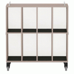 Descriptif du produit :Armoire basse corps en LIGNOpal, panneau de particules fines mélaminé avec chants collés en matière synthétique (MS).Avec parois intermédiaires collées.Colonne perforée (25 mm) avec tablettes et panneau arrière en tôle d\'acier perforée.2 colonnes avec 5 bacs en plastique, hauteur 15 cm, sur rail de guidage.1 colonne avec 1 porte à battant, poignée étrier, tablettes amovibles.Systèm ...