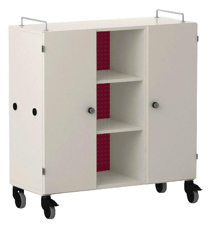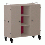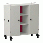 Descriptif du produit :Armoire basse corps en LIGNOpal, panneau de particules fines mélaminé avec chants collés en matière synthétique (MS).Avec parois intermédiaires collées.Colonne perforée (25 mm) avec tablettes et panneau arrière en tôle d\'acier perforée.2 colonnes avec 5 bacs en plastique, hauteur 15 cm, sur rail de guidage, 2 portes à battant, poignée étrier.Système de verrouillage avec serrure à ...