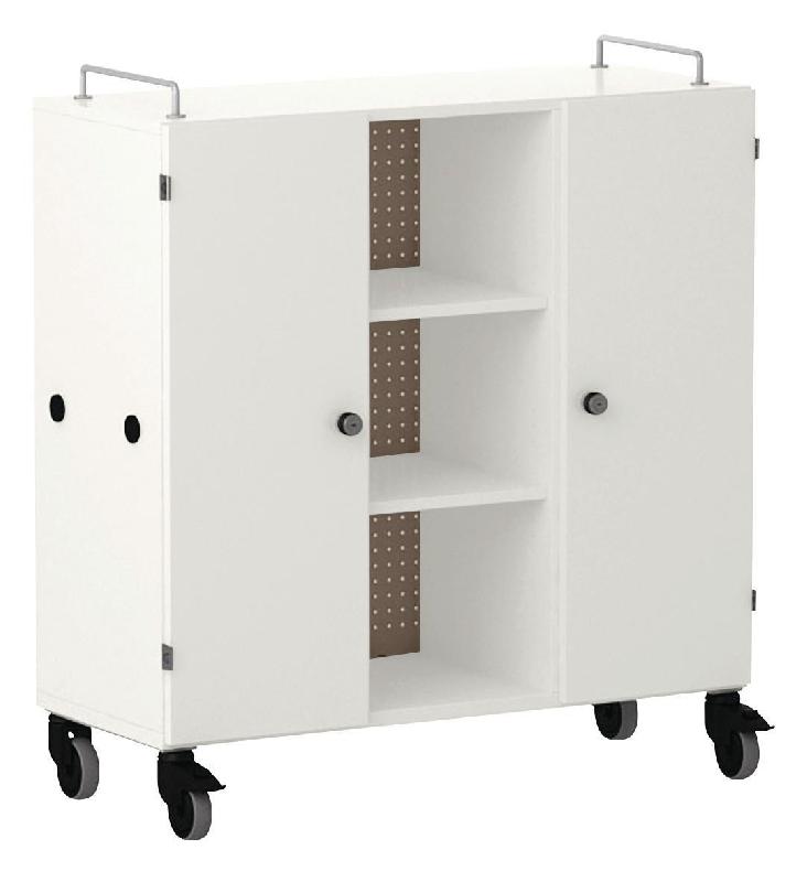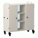 Armoire basse corps en LIGNOpal, panneau de particules fines mélaminé avec chants collés en matière synthétique (MS).Avec parois intermédiaires collées.Colonne perforée (25 mm) avec tablettes et panneau arrière en tôle d\'acier perforée.2 colonnes avec 5 bacs en plastique, hauteur 15 cm, sur rail de guidage, 2 portes à battant, poignée étrier.Système de verrouillage avec serrure à barillet.Aimants fixés sur les parois latérales pour la liaison avec d\'autres éléments.2 barres de préhension métalliques fixées sur l\'armoire.Livré monté.