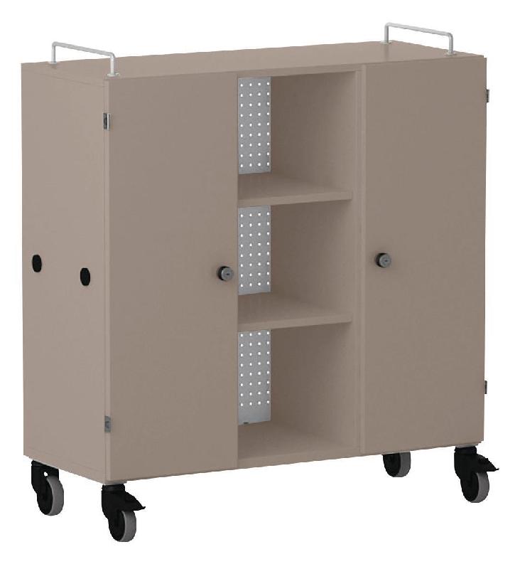Descriptif du produit :Armoire basse corps en LIGNOpal, panneau de particules fines mélaminé avec chants collés en matière synthétique (MS).Avec parois intermédiaires collées.Colonne perforée (25 mm) avec tablettes et panneau arrière en tôle d\'acier perforée.2 colonnes avec 5 bacs en plastique, hauteur 15 cm, sur rail de guidage, 2 portes à battant, poignée étrier.Système de verrouillage avec serrure à ...
