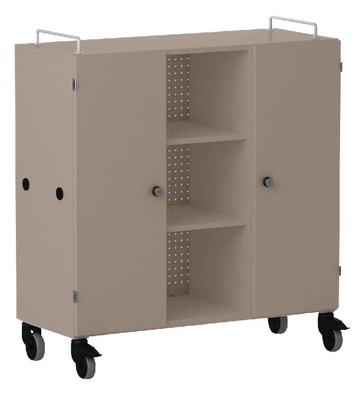 Descriptif du produit :Armoire basse corps en LIGNOpal, panneau de particules fines mélaminé avec chants collés en matière synthétique (MS).Avec parois intermédiaires collées.Colonne perforée (25 mm) avec tablettes et panneau arrière en tôle d\'acier perforée.2 colonnes avec 5 bacs en plastique, hauteur 15 cm, sur rail de guidage, 2 portes à battant, poignée étrier.Système de verrouillage avec serrure à ...