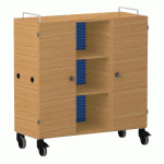 Armoire basse corps en LIGNOpal, panneau de particules fines mélaminé avec chants collés en matière synthétique (MS).Avec parois intermédiaires collées.Colonne perforée (25 mm) avec tablettes et panneau arrière en tôle d\'acier perforée.2 colonnes avec 5 bacs en plastique, hauteur 15 cm, sur rail de guidage, 2 portes à battant, poignée étrier.Système de verrouillage avec serrure à barillet.Aimants fixés sur les parois latérales pour la liaison avec d\'autres éléments.2 barres de préhension métalliques fixées sur l\'armoire.Livré monté.