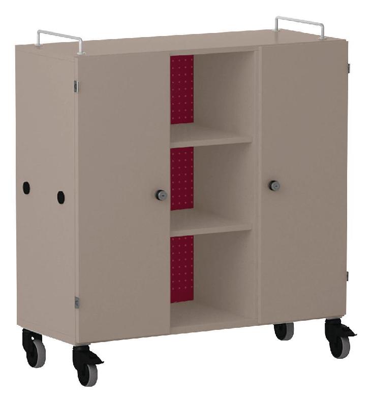 ARMOIRE BASSE SHIFT+ LANDSCAPE MÉLA. 9 CASES 2 PORTES - GRIS TERRE - ROUGE SANG - MANUTAN COLLECTIVITÉS