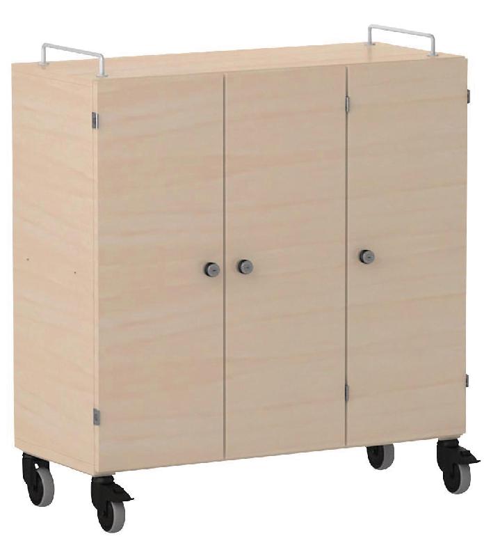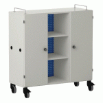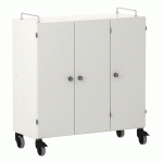 Descriptif du produit :Armoire basse corps en LIGNOpal, panneau de particules fines mélaminé avec chants collés en matière synthétique (MS).Avec parois intermédiaires collées.Colonne perforée (25 mm) avec tablettes et panneau arrière en tôle d\'acier perforée. 3 colonnes avec 5 bacs en plastique, hauteur 15 cm, sur rail de guidage, 3 portes à battant, poignée étrier.Système de verrouillage avec serrure à ...