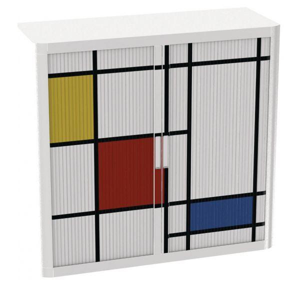 Descriptif du produit :Armoire Easy Office hauteur 104 cm corps blanc rideaux décor Design