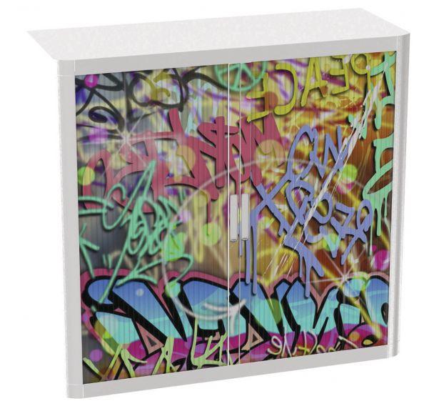 Descriptif du produit :Armoire Easy Office hauteur 104 cm corps blanc rideaux décor Freestyle