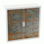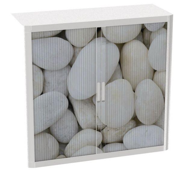 Descriptif du produit :Armoire Easy Office hauteur 104 cm corps blanc rideaux décor Galets