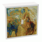Descriptif du produit :Armoire Easy Office hauteur 104 cm corps blanc rideaux décor Triangle
