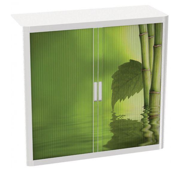 Descriptif du produit :Armoire Easy Office hauteur 104 cm corps blanc rideaux décor Zen