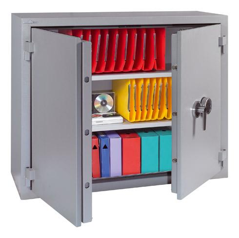 - Pour classer vos documents importants en toute sécurité, choisissez l’armoire forte anti feu double paroi serrure électronique Hartmann. Pour vous fournir un rangement optimal, ce mobilier dispose de tablettes métal, réglables en hauteur tous les 4 cm. Pratiques et résistantes, les tablettes sont munies d’un rail pour dossiers suspendus et peuvent supporter une charge maximum de 80 kg. ...