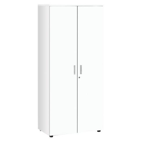 - Faisant partie de la gamme de mobilier Intuitiv, cette armoire haute présente un design élégant. D’une grande résistance, ce meuble est réalisé en panneau de particules mélaminé. De plus, il dispose de poignées en métal à finition aluminium qui lui confèrent un bel aspect. Cette armoire est munie de portes battantes équipées de serrures 3 points, idéales pour sécuriser vos documents. 2 clés vous seront fournies à l’achat.L’armoire haute Intuitiv’ comporte 4 tablettes en bois, dont une fixe et les autres réglables en hauteur tous les 32 mm. Pour ce modèle, vous avez le choix entre 2 décors de finition : totalement blanc ou blanc sur les côtés et les fonds avec dessus et portes en chênes clair. Dimensions : H 180 x L 80 x P 47 cmDimensions utiles : L 76 x P 45 cmArmoire livrée démontée.Le montage de ce mobilier de rangement est proposé en option.Normes et environnement :Ce produit est écoresponsable car il est certifié PEFC. Label international, PEFC assure une gestion durable des forêts et garantit l’origine et la traçabilité du bois utilisé dans la fabrication des produits. Ce produit est écoresponsable car il a été fabriqué à base de 50 % minimum de matériau recyclé.