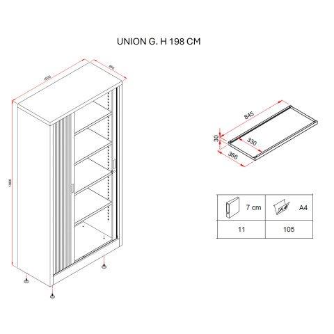 - Pensée pour le rangement professionnel de petite ou grande capacité, cette armoire métallique à rideaux Union G. allie robustesse, sécurité et modularité. Sa hauteur de 198 cm permet d’optimiser l’archivage vertical, tandis que son format compact H 100 cm facilite l’accès aux documents tout en optimisant l’espace.Les rideaux non feu M1, associés à une structure acier 7/10e, gar ...