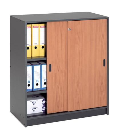 - Pour classer efficacement vos classeurs, documents, boîtes archives, dossiers ou autres fournitures, cette armoire basse Harmonie à porte coulissante vous sera d’une aide utile.Structure et Fermeture: Structure en panneaux de particules mélaminées décor bois d’une épaisseur de 16 mm résistance feu M3Poignées encastréesSerrure et fermeture à clé pour plus de sécurité2 clés fourniesTablettes réglables sur 5 positions d'épaisseur 22 mmCapacité: Nombre de tablettes par armoire: 2Chaque tablette peut contenir jusqu’à 78 dossiers suspendus en ajoutant des rails (en option)Charge maximum supportée: 90 kgAccessoires en option : Lot 2 tablettes supplémentaire : référence : 785896Lot 2 rails pour dossiers suspendus : référence : 68298Dimensions: Hauteur : 100 cmLargeur 90 cm (utile 86,5 cm)Profondeur : 44 cm (utile 36 cm)Epaisseur tablette : 22 mmMontage:Armoire livrée démontée, montage en optionNormes et environnement: Mélaminé non feu M3Ce produit est écoresponsable car il est certifié PEFC. Label international, PEFC assure une gestion durable des forêts et garantit l’origine et la traçabilité du bois utilisé dans la fabrication des produits.Fabrication française