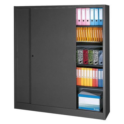 ARMOIRE MÉTAL PORTES COULISSANTES GRANDE LARGEUR L 180 X H 200 X P 45 CM ANTHRACITE