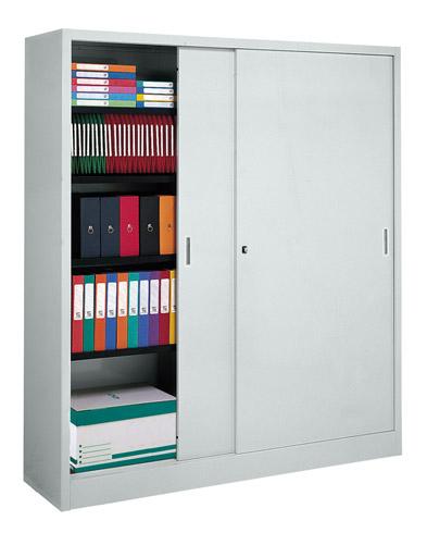 ARMOIRE MÉTAL PORTES COULISSANTES GRANDE LARGEUR L 160 X H 200 X P 45 CM GRIS CLAIR