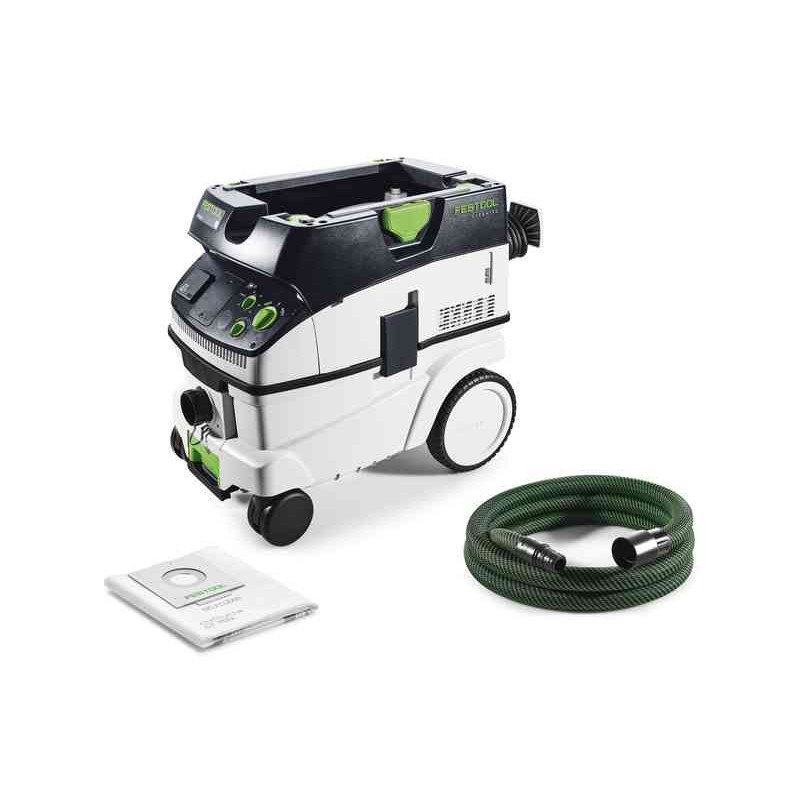 Cet aspirateur CLEANTEC CTM 26 est compact, grand, léger et puissant. Il est équipé d'une turbine hautes performances extrêmement compacte pour fournir la puissance d'aspiration de 3900 l/min pour l'aspiration des poussières de catégorie M. Il dispose d'une cuve de 26 litres qui offre des dimensions compactes et un volume maximal grâce à sa géométrie de cuve. Cet aspirateur est équipé de roues orientables et de roues arrière. Il est extrêmement mobile avec le frein de blocage qui garantit une bonne stabilité sur chaque support et pendant le transport. Il est muni d'un filtre plat entièrement intégré dans la tête d'aspiration qui assure une utilisation totale du volume. Il est également doté d'une fonction antistatique, une fixation de systainer et d'un logement pour tuyau et enrouleur. Caractéristiques techniques :Fonction antistatique lors du travailFixation de systainer grâce au système SYS-DockLogement pour tuyau et enrouleurDébit maximal : 3900 l/minSurface filtrante : 6318 cm²Catégorie de poussières : MVolume maximal du sac filtre : 24 lDimensions (L x l x h) : 630x365x540 mmPoids : 13,90 kg Principales utilisations :Pour les poussières avec valeurs MAK > 0,1 mg/m³Polyvalent à l'atelier comme sur chantier grâce à sa forme compacteCommande de la machine à distance avec dispositif de marche/arrêt automatique intégréAspiration de matières solides et liquides Equipements et fonctionnalités :Transport sûr : le SYS-Dock permet de fixer facilement et rapidement sur l'aspirateur des accessoires et des outils contenus dans le Systainer, le SORTAINER et la SYS-ToolBox grâce au clip de fermeture T-LOCTout est en ordre : le logement pour tuyau intégré dans l'appareil protège le tuyau d'aspiration et le câble secteur. Le rangement du tuyau d'aspiration dans son logement est garant d'un faible encombrement et de propreté durant le transportTout simplement tissé : lisse, souple et extrêmement robuste. Le tuyau d'aspiration tissé séduit par une meilleure maniabilité et une plus longue durée de vie. Il glisse sur tous les bords et augmente la puissance d'aspiration grâce à sa géométrie coniqueEnrouleur de câble turbo : un mécanisme de pliage intelligent permet de dérouler le câble en un tour de mainPuissance d'aspiration élevée : extrêmement puissante, compacte et légère : la turbine haute performance offre une puissance d'aspiration nettement supérieure et n'a besoin que de peu de placeSac filtre non-tissé anti-déchirure : les sacs filtres en non tissé s'autonettoient en ce qu'ils se rétractent entièrement à l'arrêt de l'aspirateur. Cet effet SELFCLEAN garantit une puissance d'aspiration élevée constante, jusqu'au remplissage completTransport en toute sécurité : le frein de blocage garantit une bonne stabilité. Les grandes roues garantissent la sécurité antibasculement. Les roues orientables et leur matériau sont résistant à l'abrasion. Grâce au centre de gravité équilibré, l'aspirateur se transporte confortablementGrande capacité : grâce au filtre plat et à l'intérieur lisse de la cuve, le sac filtre est optimisé pour se déplier. Il peut donc se remplir de manière homogène et quasi-complèteExtensibilité : en fonction des besoins, l'aspirateur peut être équipé de modules supplémentaires. Par exemple module pneumatique, prise à courant permanent, prise de courant à marche/arrêt automatique, module EAA ou Bluetooth®Pour l'aspiration des poussières de catégorie M : l'aspirateur a une homologation pour la catégorie de poussières M. Il convient pour aspirer des poussières présentant un risque pour la santé avec des valeurs seuils > 0,1 mg/m³. L'aspirateur présente un grand autocollant rouge avec des informations sur la catégorie de poussièresPolyvalente : pour la poussière, les saletés et l'eau. En aspirant de l'eau, le LevelStop coupe l'entraînement à temps et le moteur est protégé. Le filtre pour liquides est inséré en quelques gestes