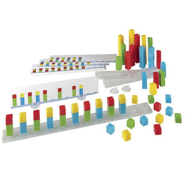 Descriptif du produit :L\'enfant emboîte des cubes de 4 couleurs entre eux, mais aussi sur des réglettes transparentes, en respectant les consignes des fiches d\'activités. Les réglettes se clipsent entre elles pour obtenir l\'alignement souhaité.Les 24 fiches d\'activités sont organisées en 4 séries de 6 fiches. Les séries jouent sur plusieurs critères : séquence de 2 éléments ou 3 éléments couleur et h ...