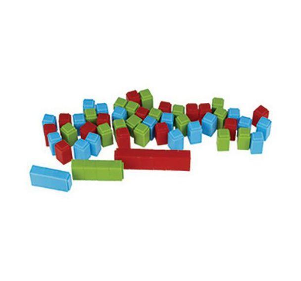 Descriptif du produit :60 cubes en plastique de 3 couleurs : 20 cubes bleus, 20 cubes verts, 20 cubes rouges. Arête cube : 1,8 cm.
