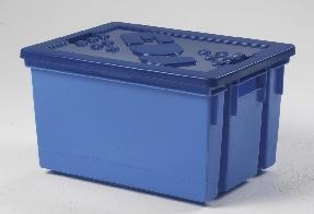 Descriptif du produit :En plastiqueBacs de rangement polyvalente, robuste et empilable équipés d\'un couvercle.Coloris : BleuDimensions : 56 x 41 x 29,5 cm.