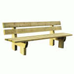 Assise 3 lames largeur 16,5 cm/dossier 3 lames largeur 12 cm. Piètement tube acier 35 x 35 mm épaisseur 2 mm.Dispositif de scellement non fourni.Livré avec notice et visserieA fixer sur sol dur par scellement (4 boulons tiges filetées Ø 10 mm L 25 cm non fournies).