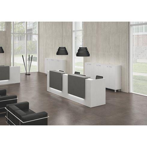 - Vous cherchez une banque d’accueil design et moderne ? Optez donc pour le modèle droit Jana.Conçu en 2 tons, ce mobilier se compose de 2 ou 3 plateaux blancs ou décor noyer et de 1 ou 2 comptoirs formés d’une large tablette anthracite ou blanche selon la largeur. Vous avez 2 largeurs au choix : 246 ou 366 cm.Robuste, son corps est fabriqué en panneaux de particules mélaminées de 25 mm ...