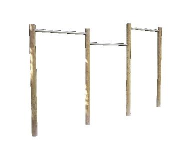 Descriptif du produit :Elément de parcours sportif pour adultes.En pin du Nord traité autoclave classe IV. Poteau section : 90 x 90 mmHauteur de chute : 2,30 m. Zone d\'implantation : 6,3 x 4 m.Les barres sont à 1,80, 2 et 2,20 m du sol. 79 kg.Installation par fixation sur la longueur de scellement.Chaque agrès est livré avec son panneau d\'exercices.