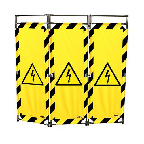 Barrière d'intervention structure Inox 180cm 3 vantaux Viso Coloris : Noir/jaune Emballage recyclable : Oui 100 % Hauteur hors tout : 1800 mm Largeur plié : 570 mm Longueur hors tout : 1700 mm Poids du produit : 13.5 kg Produit recyclable : Oui 100 % Tube Ø : 25 mm Usage : Chantier Barrière d'intervention idéale pour cloisonner une zone ou un passage. Légère et très stable grâce à ses 3 vantaux, elle s'installe et se transporte facilement. Fabriquée avec une structure en acier inoxydable et des panneaux en polyester. Modulable à souhait la barrière peut être complétée avec des extensions, des bases et un sac de transport. Fixation des tissus par bandes agrippantes et livrée avec les liaisons. Barrière d'intervention structure Inox 180cm 3 vantaux Viso, Usage: Chantier, Coloris: Noir/jaune, Hauteur hors tout: 1800 mm, Longueur hors tout: 1700 mm, Poids: 13.5 kg, Emballage recyclable: Oui 100 %, Produit recyclable: Oui 100 %, Tube Ø: 25 mm, Largeur plié: 570 mm