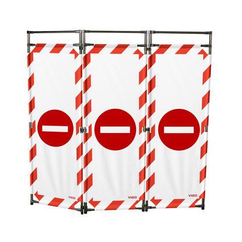 Barrière d'intervention 1,80 m 3 vantaux logo interdit Viso Coloris : Rouge/blanc Emballage recyclable : Oui 100 % Hauteur hors tout : 1800 mm Largeur plié : 570 mm Longueur hors tout : 1700 mm Poids du produit : 13.5 kg Produit recyclable : Oui 100 % Tube Ø : 25 mm Usage : Chantier Barrière d'intervention idéale pour cloisonner une zone ou un passage. Légère et très stable grâce à ses 3 vantaux, elle s'installe et se transporte facilement. Fabriquée avec une structure en acier inoxydable et des panneaux en polyester. Modulable à souhait la barrière peut être complétée avec des extensions, des bases et un sac de transport. Fixation des tissus par bandes agrippantes et livrée avec les liaisons. Barrière d'intervention 1,80 m 3 vantaux logo interdit, Usage: Chantier, Coloris: Rouge/blanc, Hauteur hors tout: 1800 mm, Longueur hors tout: 1700 mm, Poids: 13.5 kg, Emballage recyclable: Oui 100 %, Produit recyclable: Oui 100 %, Tube Ø: 25 mm, Largeur plié: 570 mm