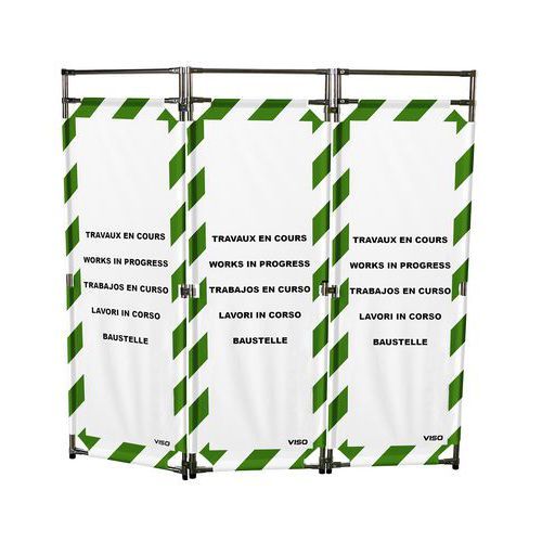 Barrière d'intervention structure Inox 180cm 3 vantaux Viso Coloris : Vert/blanc Emballage recyclable : Oui 100 % Hauteur hors tout : 1800 mm Largeur plié : 570 mm Longueur hors tout : 1700 mm Poids du produit : 13.5 kg Produit recyclable : Oui 100 % Tube Ø : 25 mm Usage : Chantier Barrière d'intervention idéale pour cloisonner une zone ou un passage. Légère et très stable grâce à ses 3 vantaux, elle s'installe et se transporte facilement. Fabriquée avec une structure en acier inoxydable et des panneaux en polyester. Modulable à souhait la barrière peut être complétée avec des extensions, des bases et un sac de transport. Fixation des tissus par bandes agrippantes et livrée avec les liaisons. Barrière d'intervention structure Inox 180cm 3 vantaux Viso, Usage: Chantier, Coloris: Vert/blanc, Hauteur hors tout: 1800 mm, Longueur hors tout: 1700 mm, Poids: 13.5 kg, Emballage recyclable: Oui 100 %, Produit recyclable: Oui 100 %, Tube Ø: 25 mm, Largeur plié: 570 mm