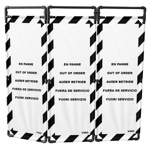 Barrière d'intervention structure PVC 180cm 3 vantaux Viso Coloris : Noir/blanc Emballage recyclable : Oui 100 % Hauteur hors tout : 1800 mm Largeur plié : 570 mm Longueur hors tout : 1700 mm Poids du produit : 6.5 kg Produit recyclable : Oui 100 % Tube Ø : 25 mm Usage : Chantier Barrière d'intervention idéale pour cloisonner une zone ou un passage. Légère et très stable grâce à ses 3 vantaux, elle s'installe et se transporte facilement. Fabriquée avec une structure en PVC et des panneaux en polyester. Modulable à souhait la barrière peut être complétée avec des extensions, des bases et un sac de transport. Fixation des tissus par bandes agrippantes et livrée avec les liaisons. Barrière d'intervention structure PVC 180cm 3 vantaux, Usage: Chantier, Coloris: Noir/blanc, Hauteur hors tout: 1800 mm, Longueur hors tout: 1700 mm, Poids: 6.5 kg, Emballage recyclable: Oui 100 %, Produit recyclable: Oui 100 %, Tube Ø: 25 mm, Largeur plié: 570 mm