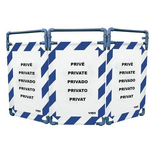 Barrière d'intervention structure PVC 3 vantaux Viso Coloris : Bleu/blanc Emballage recyclable : Oui 100 % Hauteur hors tout : 1000 mm Largeur plié : 570 mm Longueur hors tout : 1700 mm Poids du produit : 3.20 kg Produit recyclable : Oui 100 % Tube Ø : 25 mm Usage : Chantier Barrière d'intervention idéale pour cloisonner une zone ou un passage. Légère et très stable grâce à ses 3 vantaux, elle s'installe et se transporte facilement. Fabriquée avec une structure en PVC et des panneaux en polyester. Modulable à souhait la barrière peut être complétée avec des extensions, des bases et un sac de transport. Fixation des tissus par bandes agrippantes et livrée avec les liaisons. Barrière d'intervention structure PVC 3 vantaux, Usage: Chantier, Coloris: Bleu/blanc, Hauteur hors tout: 1000 mm, Longueur hors tout: 1700 mm, Poids: 3.20 kg, Emballage recyclable: Oui 100 %, Produit recyclable: Oui 100 %, Tube Ø: 25 mm, Largeur plié: 570 mm