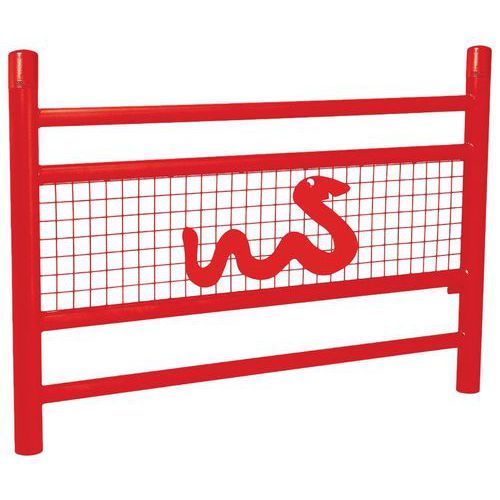 Descriptif du produit :Barrière Linea spéciale Ecole 1.57 m Serpent galva Procity Coloris : Rouge Finition : Époxy Garantie client : 5 ans Hauteur hors tout : 110 cm Largeur hors tout : 7.6 cm Longueur hors tout : 157 cm Matériau : Acier Poids : 31 kg Barrière Linéa avec grillage à mailles carrées. Poteaux en acier Ø 76 mm et lisses Ø 50 mm, pommeau Carrefour. Peint sur zinc. Animation Serpent e ...