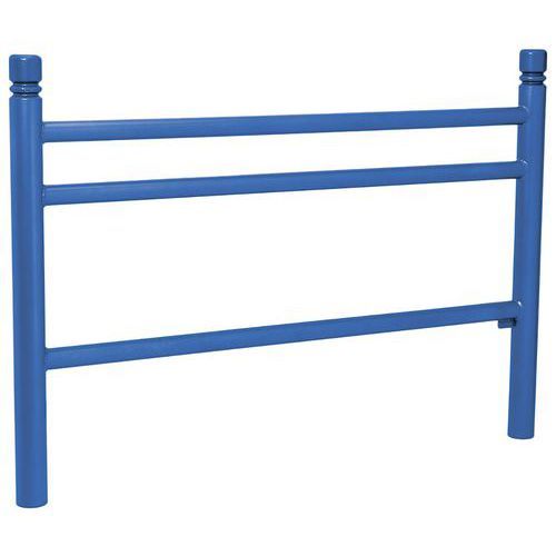 Descriptif du produit :Barrière Trio 1.57 m pommeau City zinc Procity Coloris : Bleu Finition : Époxy Garantie client : 5 ans Hauteur hors tout : 110.5 cm Largeur hors tout : 7.6 cm Longueur hors tout : 157 cm Matériaux : Acier Poids du produit : 25 kg Barrière Trio avec poteaux en tubes acier Ø 76 mm, épaisseur 3 mm. Lisses horizontales Ø 50 mm, épaisseur 2 mm. Pommeau City. Peint sur zinc. Fixat ...