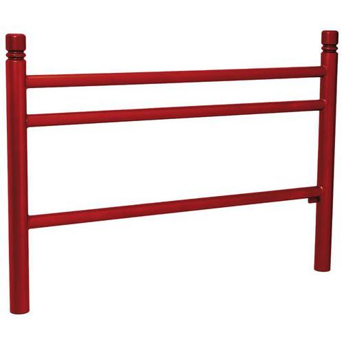 Descriptif du produit :Barrière Trio 1.57 m pommeau City zinc Procity Coloris : Rouge foncé Finition : Époxy Garantie client : 5 ans Hauteur hors tout : 110.5 cm Largeur hors tout : 7.6 cm Longueur hors tout : 157 cm Matériaux : Acier Poids du produit : 25 kg Barrière Trio avec poteaux en tubes acier Ø 76 mm, épaisseur 3 mm. Lisses horizontales Ø 50 mm, épaisseur 2 mm. Pommeau City. Peint sur zin ...