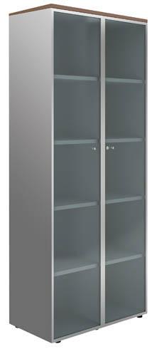 Descriptif du produit :- Structure : panneaux de particules revêtement mélaminé blanc ou aluminium. Panneau conforme au CARB, donc E0 sans formaldéhyde.Equipement : rangement 5 niveaux avec 4 tablettes bois réglables en hauteur, finition assortie au corps de la bibliothèque. 2 portes battantes en verre dépoli, équipées d'une serrure et de poignées avec boutons chromés. Dimensions : Hauteur 217 cm, largeur 86c ...