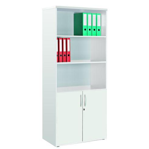 - Rentabilisez l’espace dans votre bureau en y installant la bibliothèque haute bois Excellens de Bruneau efficace et fonctionnelle. Avec ses étagères ajustables, et ses portes verrouillables en partie basse, vous aurez un rangement qui s'adapte à la hauteur de vos documents, tout en ayant la possibilité de les sécuriser. Composition:Structure : panneau en particules d'épaisseur 25 mm dessus, 16 mm côtés, 8mm dosTablettes : 3 tablettes dont 2 réglables en hauteur en partie haute + 1 réglable en partie basse, permettant d'ajuster la hauteur de vos documentsPortes battantes : panneau de particules 16 mm, charnières invisibles, poignée métal, serrure 3 pointsVérins réglable de l'intérieur pour ajuster le niveau face aux irrégularités du solDimensions:Dimensions totales : H 182 x L 80 x P 46 cmDimensions utiles : H 175.3 x L 76 x P 41.6 cmDimensions tablette : L 76 x P 39.6 cmAccessoires en option:Rails pour dossiers suspendus L 75 cm pour étagères bois (ref 68297)Montage:Livré en kit, à plat. Montage en optionNormes et environnement:Ce produit est écoresponsable car il est certifié PEFC. Label international, PEFC assure une gestion durable des forêts et garantit l’origine et la traçabilité du bois utilisé dans la fabrication des produits.Panneau normé non feu Ds2-d0, équivalent à la norme M3Fabrication française
